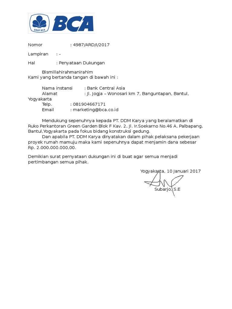 20 Contoh Surat Dukungan Bank Info Dana Tunai
