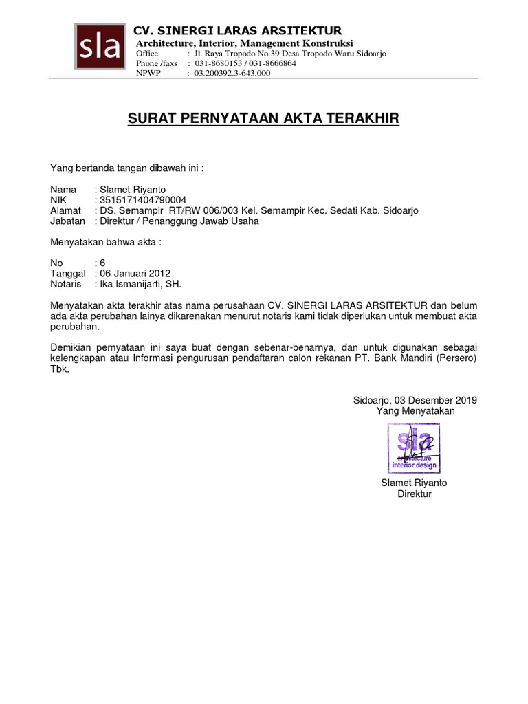 Download Contoh Surat Pernyataan Akta Terakhir Contoh Jel