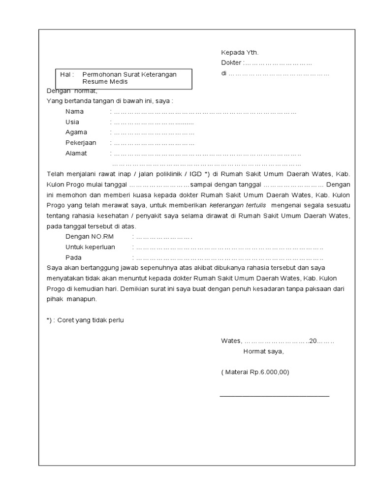 Contoh Surat Kuasa Pengambilan Resume Medis Contoh Surat